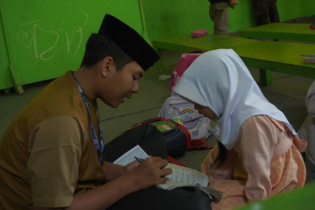 Di Bawah Hujan, Santri Ajarkan Mengaji