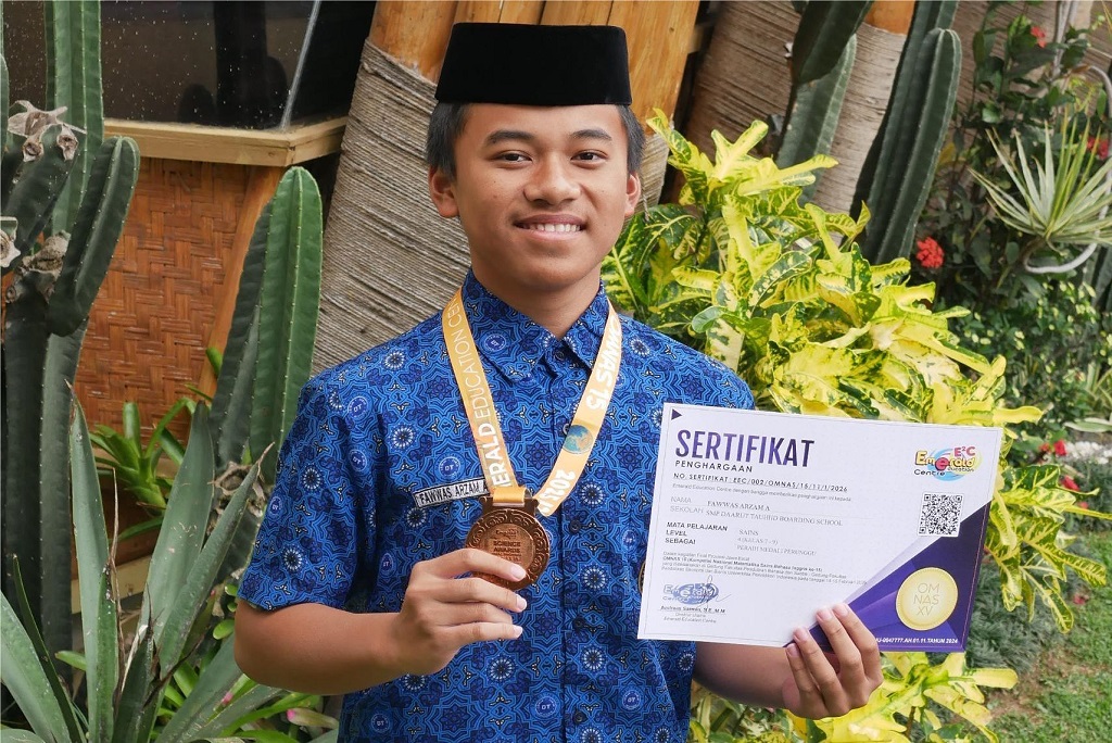 Senyum sumringah terpancar dari wajah tiga santri SMP Daarut Tauhiid Boarding School (DTBS) Putra ketika nama tim mereka diumumkan sebagai …