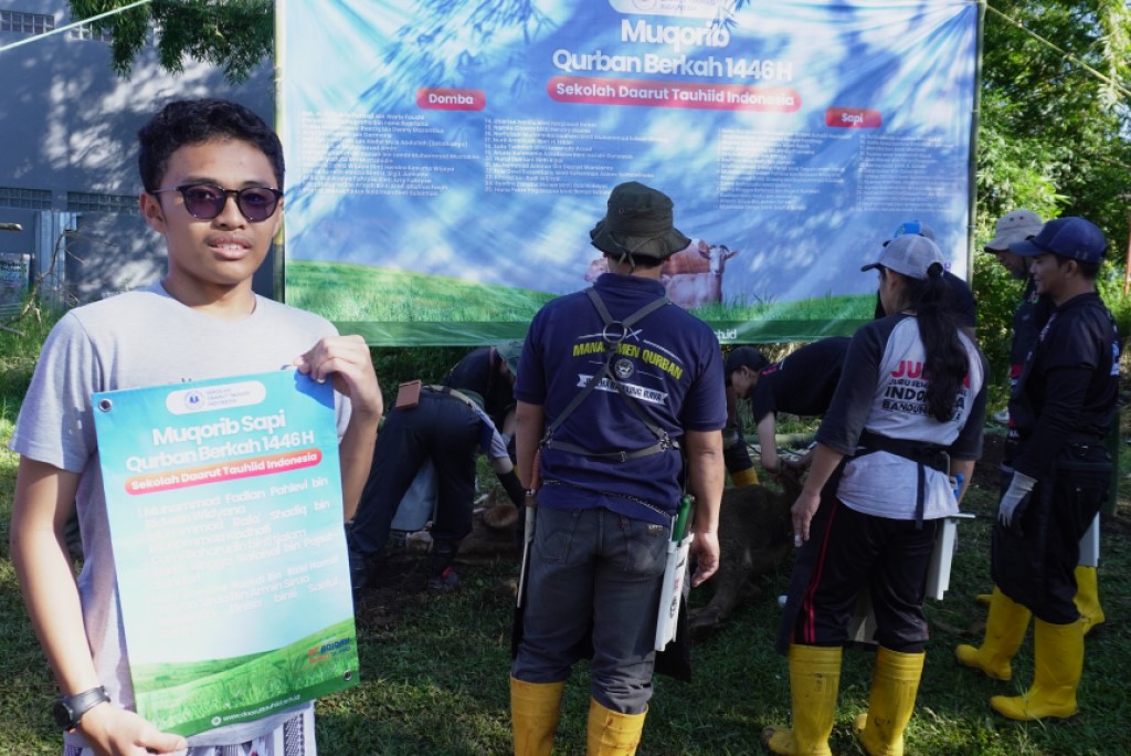 Pagi hari, tepat saat hari Tasyrik pada (8/6/2025), kawasan Eco 1 Pesantren Daarut Tauhiid menjadi lokasi penyembelihan hewan Qurban. Para muqorib, petugas penyembelih, civitas sekolah DT mendatangi lokasi tersebut beramai-ramai.