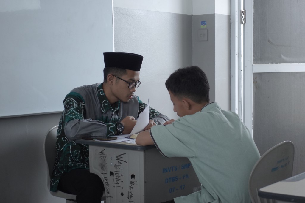 Sesi Tes Baca Qur’an saat pelaksanaaan Tes PPDB Gelombang ke-2 SMP DTBS Putra pada (30/9/2024) di Kampus SMP DTBS Putra, Kawasan Eco Pesantren 1 Daarut Tauhiid.