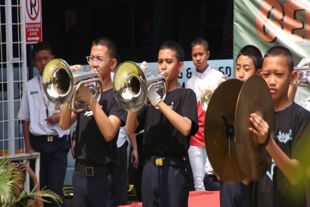 Ekstra Kurikuler Marching Band mempertontonkan karyanya pada momentum Gebyar Ekstra Kurikuler SMP DTBS Putra (29/7/2024) di Lapangan Basket, Gedung SMP DTBS Putra, Kawasan Eco Pesantren 1 Daarut Tauhiid.