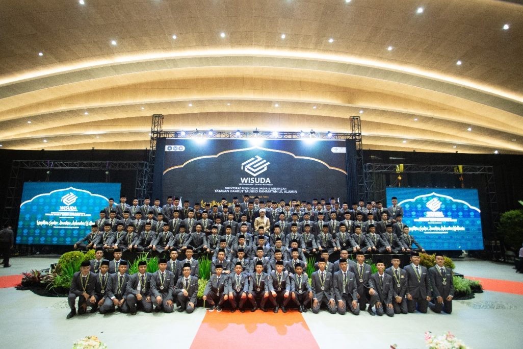 Foto angkatan Sarfaraz 11 bersama K.H. Abdullah Gymnastiar pada acara Wisuda Sekolah Daarut Tauhiid Indonesia (23/5/2024) di Convention Hall Eldorado Dome, Bandung.