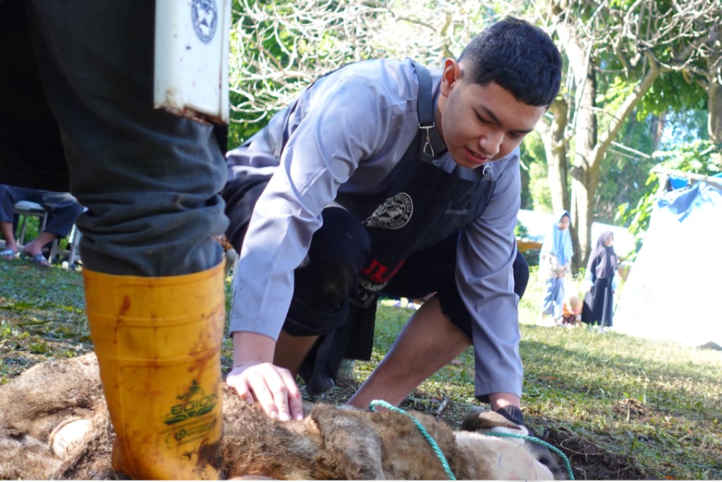 “Hari ini saya menjadi muqorib dan diberi kesempatan untuk menyembelih. Yang saya rasakan ketika menyembelih ada rasa bahagia, karena saya mendapat ilmu baru tentang penyembelihan,” tutur Raihan, dengan mata berbinar penuh semangat.